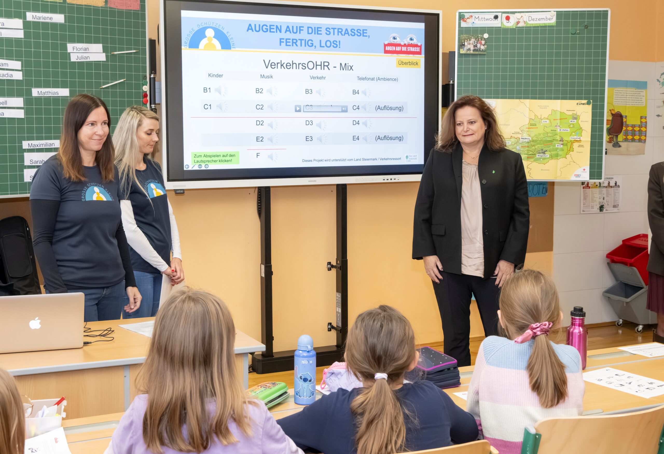 Seit 2023 tourt der Verein GROSSE SCHÜTZEN KLEINE mit seinen „Augen auf die Straße“-Workshops durch die Steiermark. Dank der Unterstützung des Verkehrsressorts des Landes Steiermark konnten so bereits 40 Schulen mit 96 Klassen und über 1.600 Schüler:innen steiermarkweit kostenfrei an diesem Programm für Sicherheit im Straßenverkehr teilnehmen.