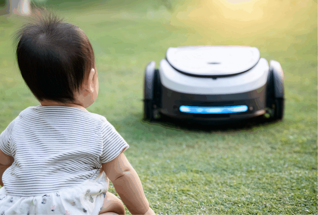 Rasenmäherroboter können vor allem für Kleinkinder zur unterschätzten Gefahr werden. Foto: gen. m. KI/Adobe Express