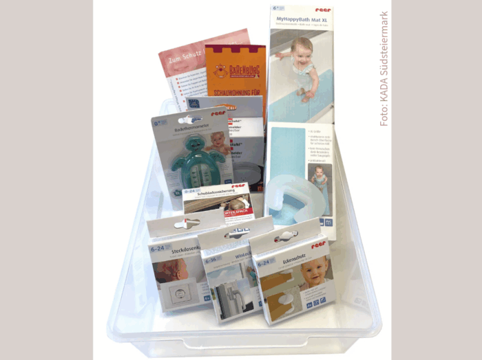 Die KinderSicherheitsBox bekommen Sie bei unserem Partner KADA Südsteiermark (Kindersicherheitsbox „plus“ mit Herdschutzgitter. – KADA Shop bzw. Kindersicherheitsbox „Basisausstattung“ – KADA Shop) in der Basis-Variante oder in der Optimal-Variante (inkl. Herdschutzgitter). Bis Ende 2025 wurden mit Hilfe der KinderSicherheitsBox bereits 10.911 Haushalte kindersicher gemacht.